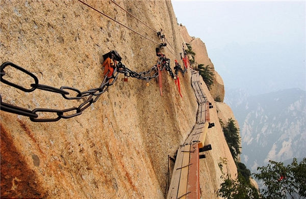 游客在山道進(jìn)行攀登時(shí),鏈條就成了唯一的安全扶手,這時(shí)手扶鏈條既能節(jié)省體力,還能防止腳下打滑發(fā)生墜落;鏈條還被用來(lái)圍住懸崖邊,游客既能觀賞到景色,人身安全還得到了保障。例如:著名的華山棧道,游客需手扶鏈條走完全程。在游覽中鏈條不僅節(jié)省了體力,還對(duì)游客的人身安全起到了保護(hù)作用。